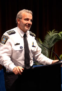 Pour lui l’action concertée sur le terrain est indispensable pour mieux soutenir les personnes en situation d’itinérance et transformer les pratiques. D’entrée de jeu, le chef de police a rappelé son rôle dans la mise en place de plusieurs initiatives policières axées sur l’itinérance et la santé mentale, dont l’équipe EMRII (2008) et l’équipe ESUP (2012), née à la suite d’un événement tragique survenu au centre-ville.